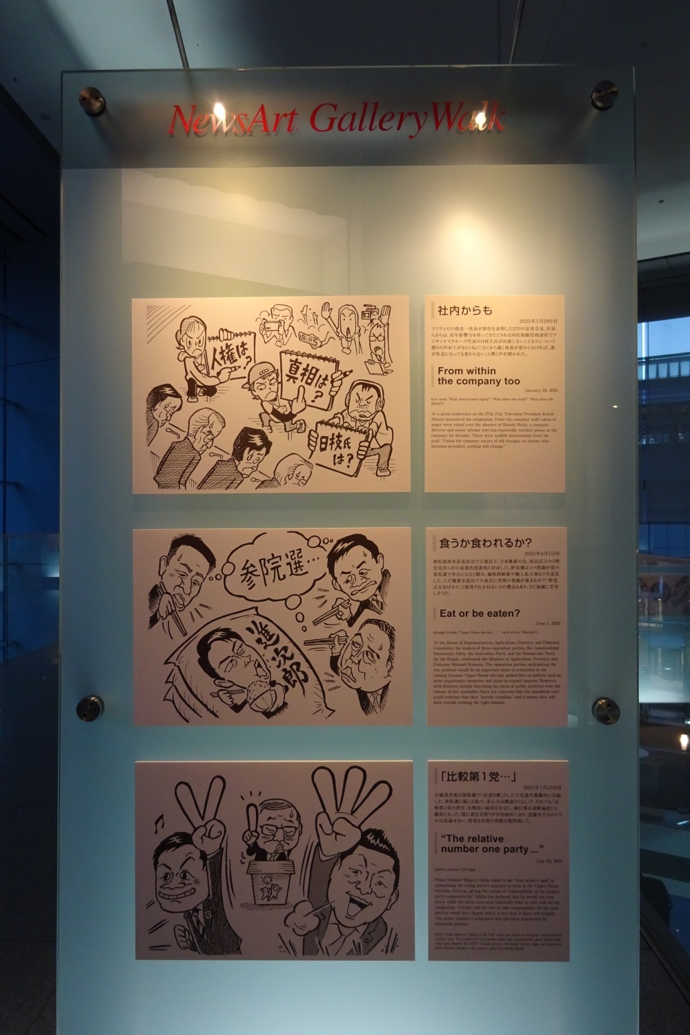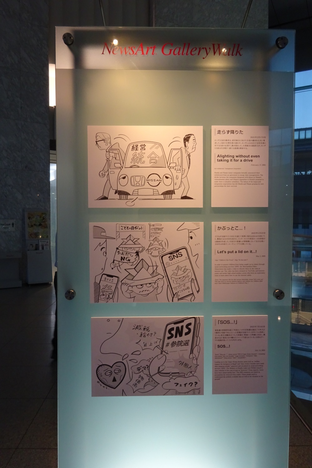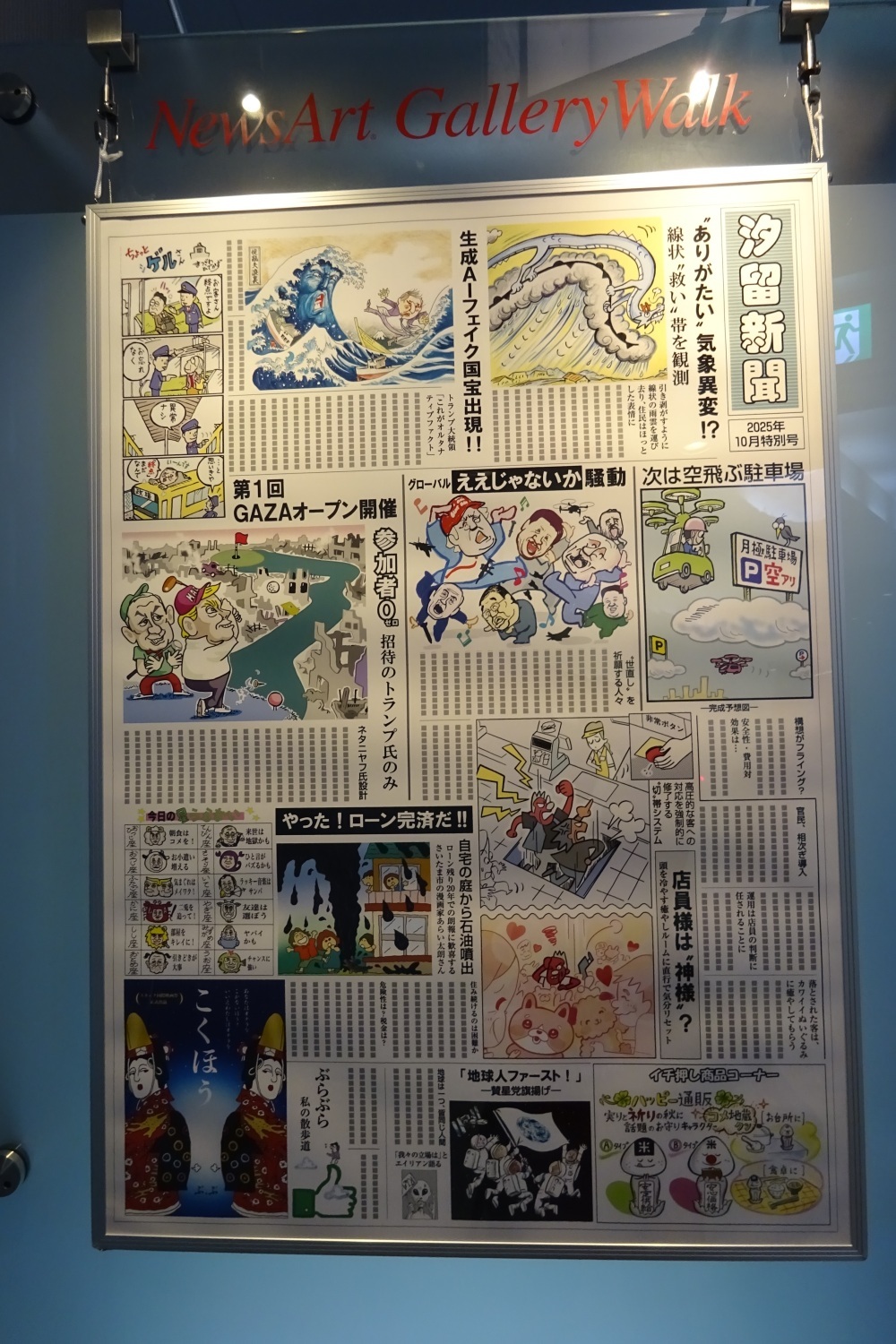 2025年10月1日(水)〜31日(金)まで東京都港区汐留にある共同通信社本社・汐留メディアタワー3階のギャラリーウォークにて、第19回目となる世相漫画展が開催されました。