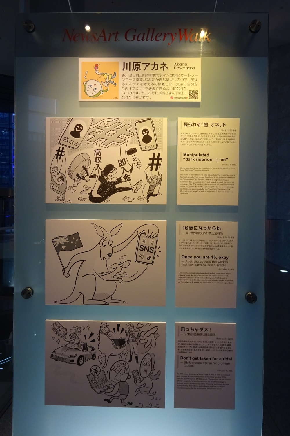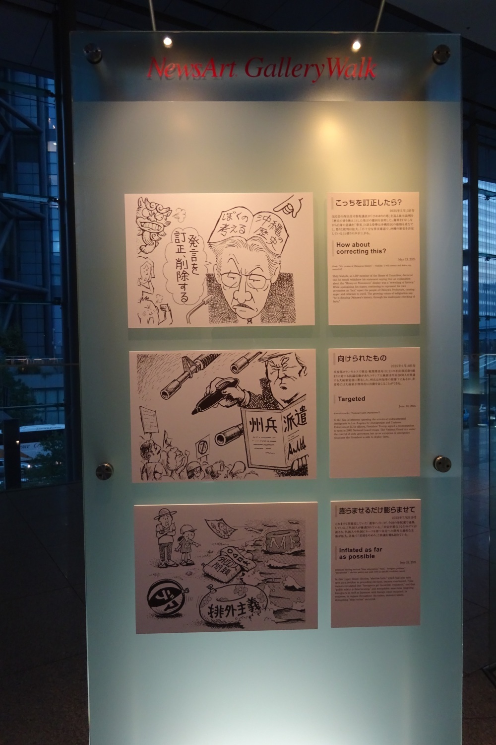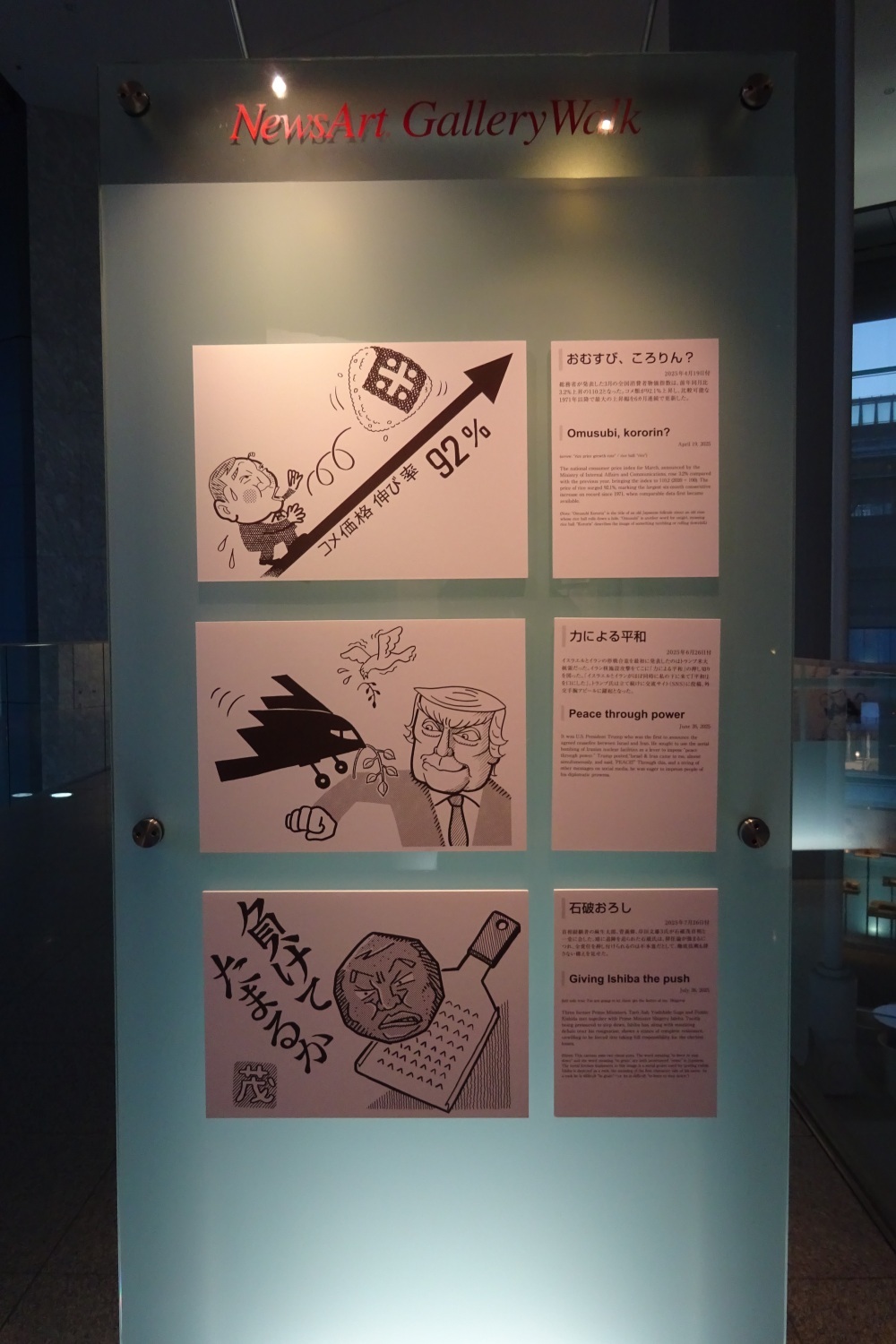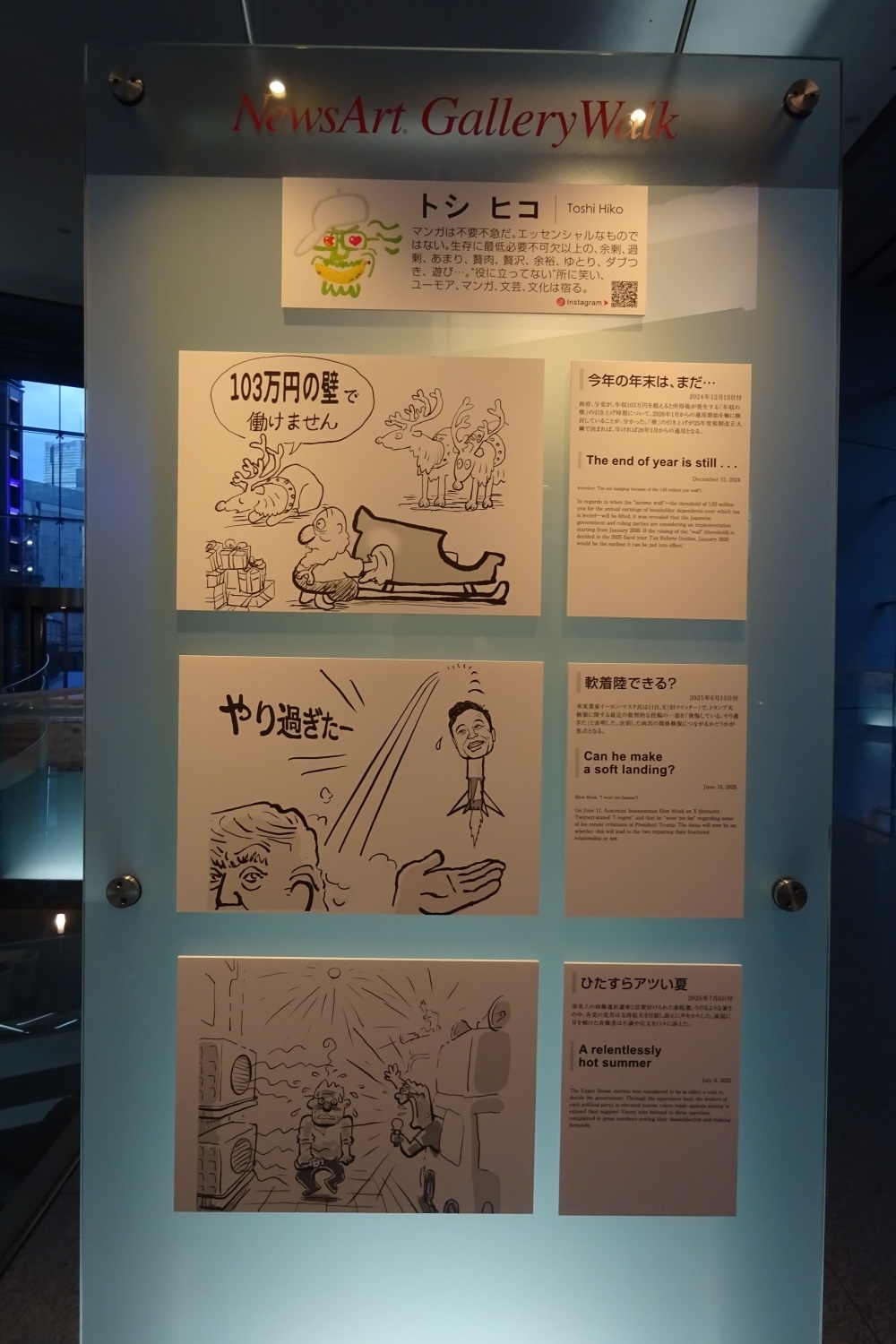 2025年10月1日(水)〜31日(金)まで東京都港区汐留にある共同通信社本社・汐留メディアタワー3階のギャラリーウォークにて、第19回目となる世相漫画展が開催されました。