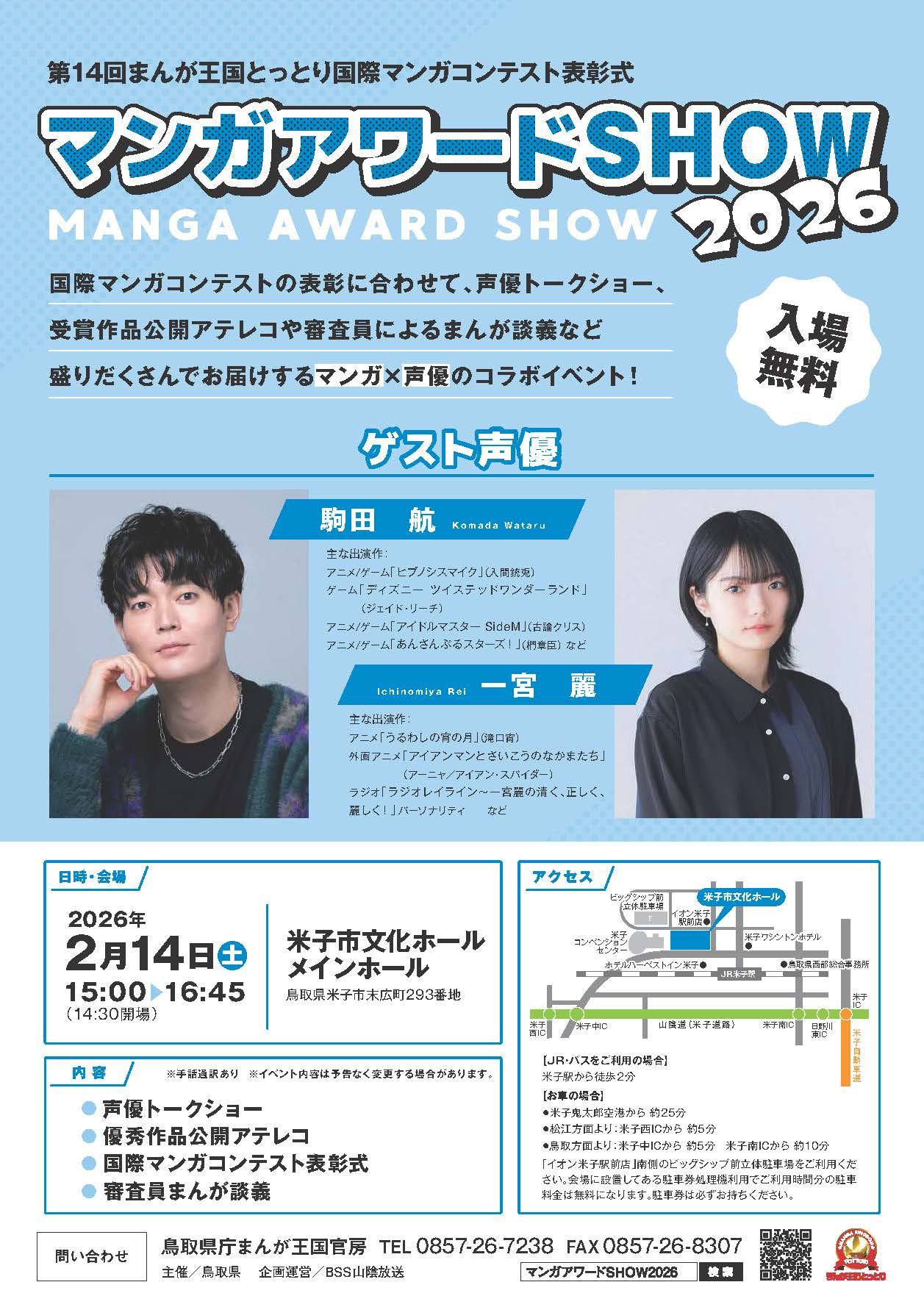 - 第14回まんが王国とっとり国際マンガコンテスト表彰式「MANGA AWARD SHOW 2026」