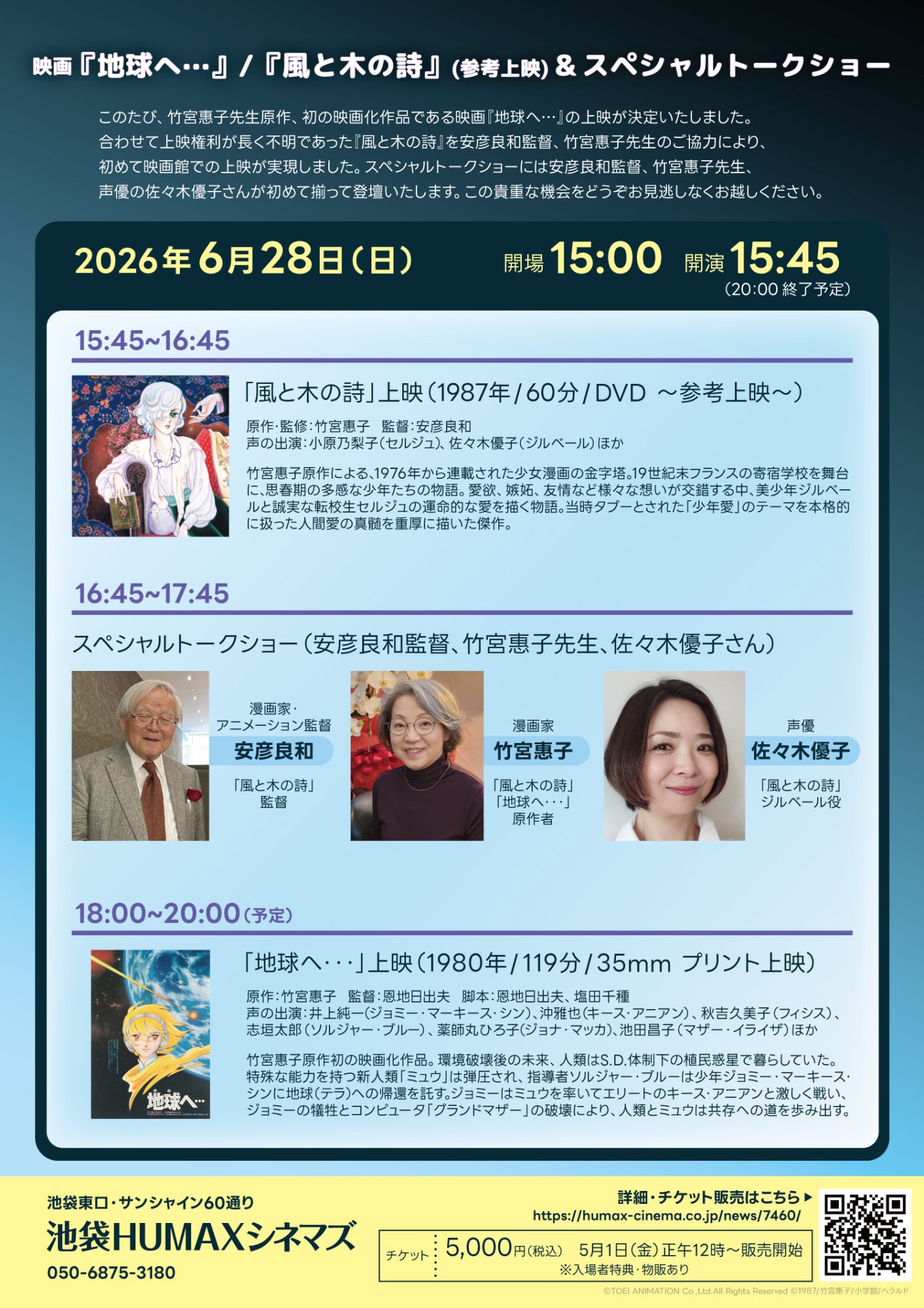 - 映画『地球へ…』/『風と木の詩』(参考上映)&スペシャルトークショー